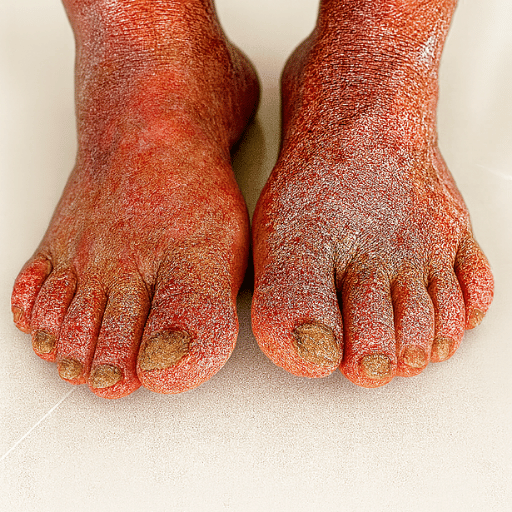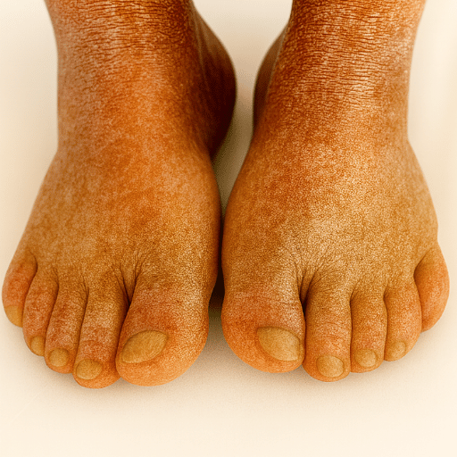 Numbness masks the first ulcers. Skin looks dry and fragile, early infection risk builds unnoticed.